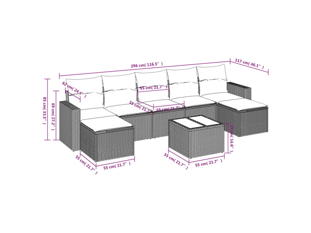 Tato zahradní sedací souprava je dokonalým doplňkem vaší zahrady, terasy nebo dvorku a poskytne vám pohodlné a příjemné místo, kde si můžete povídat s rodinou a přáteli nebo jen tak odpočívat a užívat si pobyt venku.