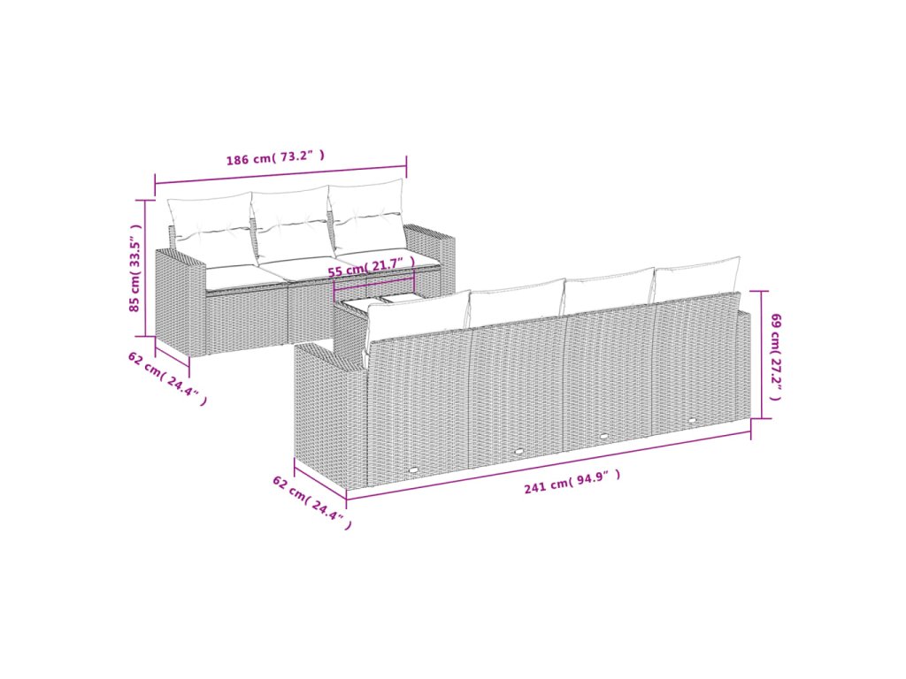 Tato zahradní sedací souprava je dokonalým doplňkem vaší zahrady, terasy nebo dvorku a poskytne vám pohodlné a příjemné místo, kde si můžete povídat s rodinou a přáteli nebo jen tak odpočívat a užívat si pobyt venku.