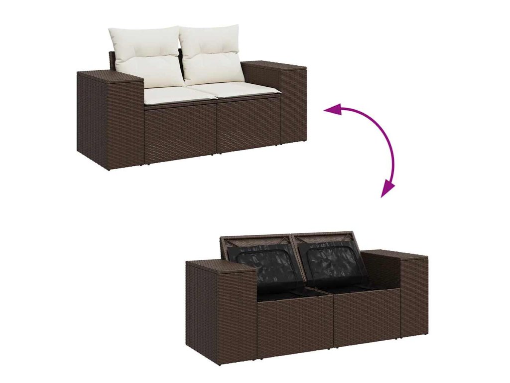 - Úložný prostor s voděodolným vakem: Zahradní nábytek má úložný prostor pod sedákem, který je opatřen voděodolnou vložkou a poslouží vám k ukládání podušek, hraček a dalších věcí. Vnitřní vak lze bezpečně připevnit k venkovnímu nábytku pomocí suchého zipu, což zaručí větší stabilitu.