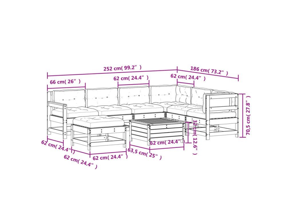 - Rozměry zahradní rohové pohovky: 62 x 62 x 70,5 cm (Š x H x V)