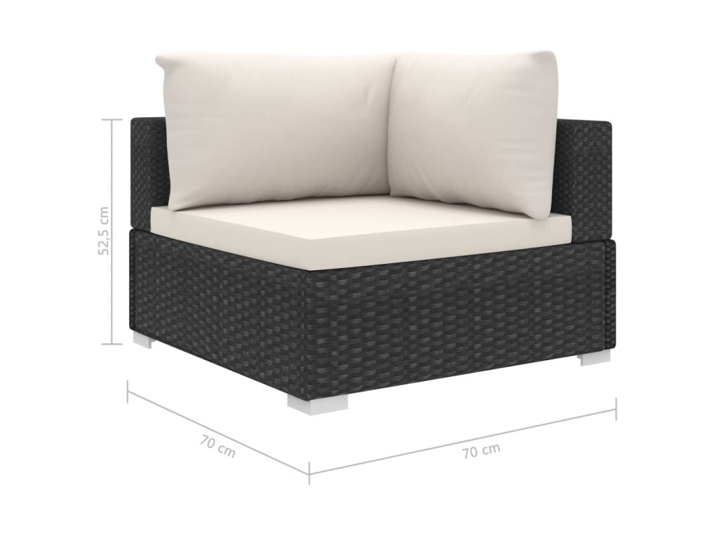 - Rozměry středové pohovky: 70 x 70 x 52,5 cm (Š x H x V)