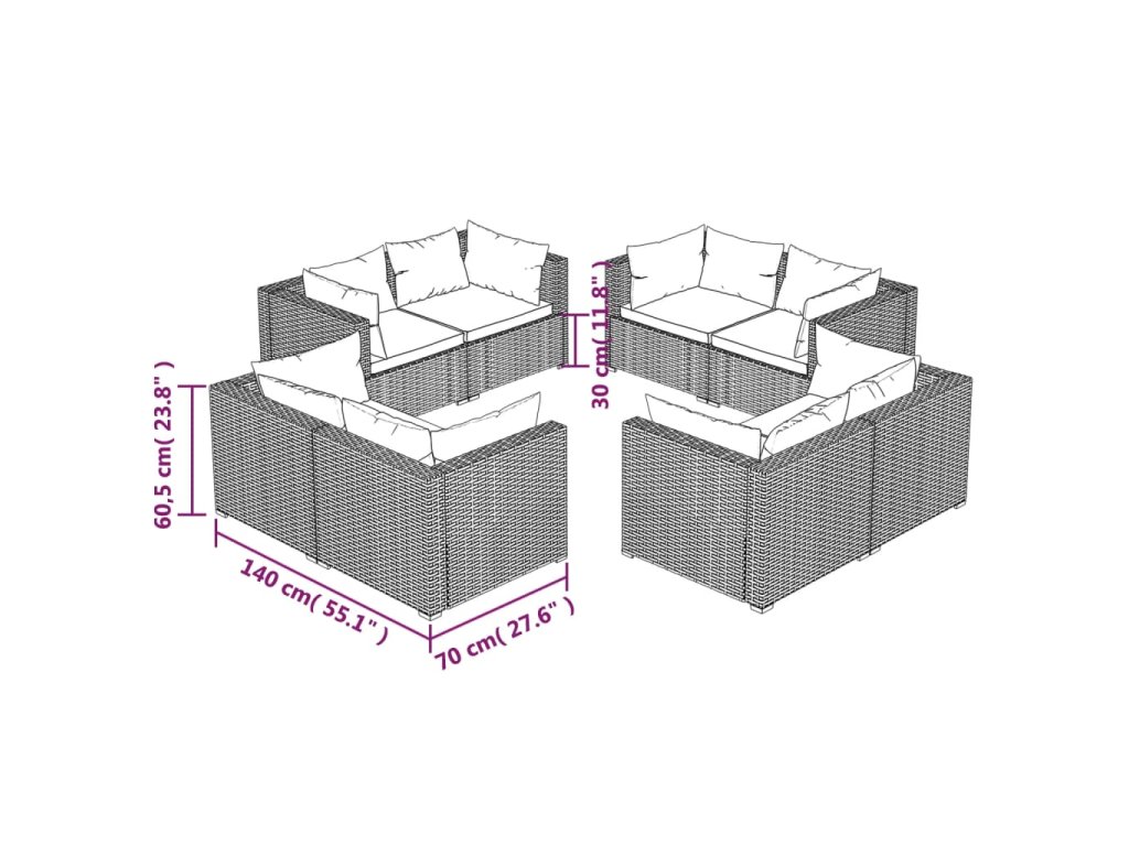 - Rozměry rohové pohovky (každé): 70 x 70 x 60,5 cm (D x Š x V)