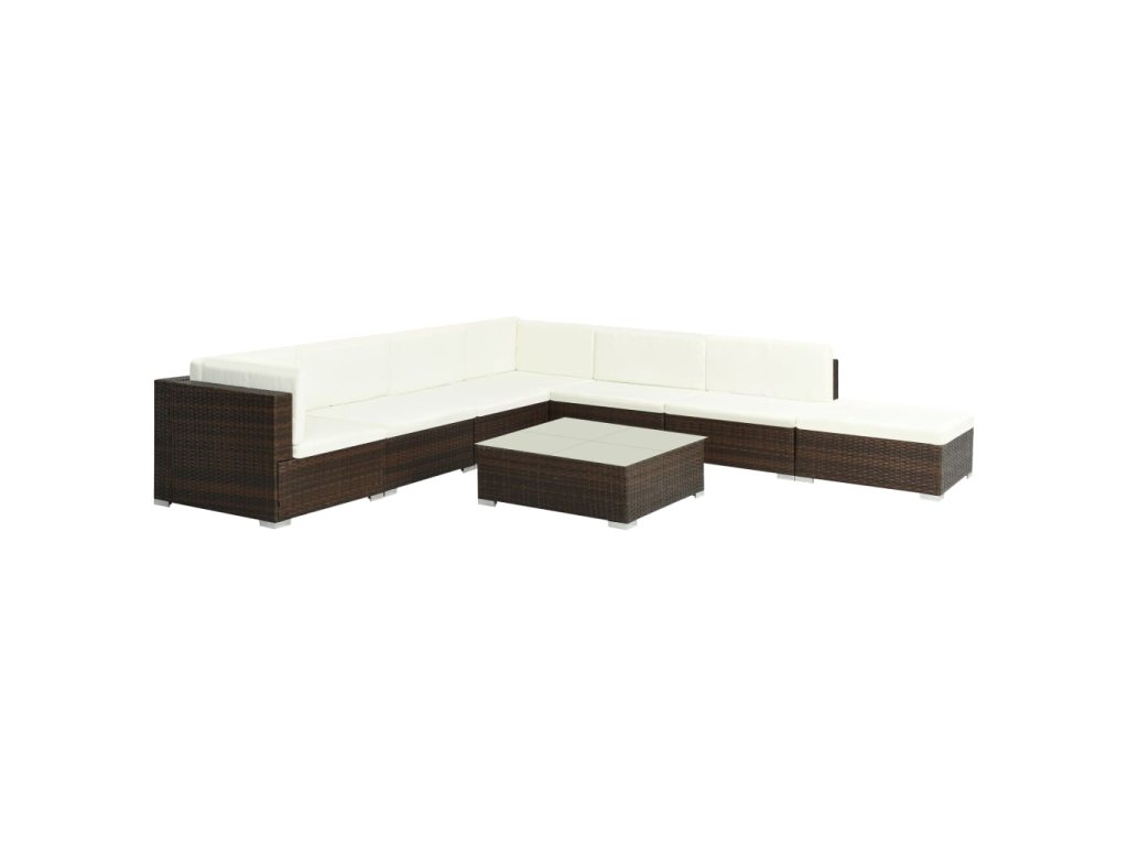 Tato polyratanová sedací souprava sestává ze 2 rohových pohovek, 4 středových pohovek, 1 konferenčního stolku, 1 taburetu, 8 polštářů za záda a 7 podušek na sedáky. Pomůže vám vytvořit stylové posezení na vaší zahradě či terase.
