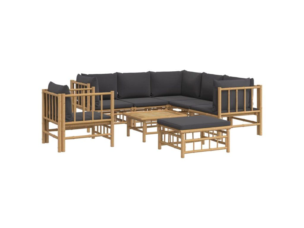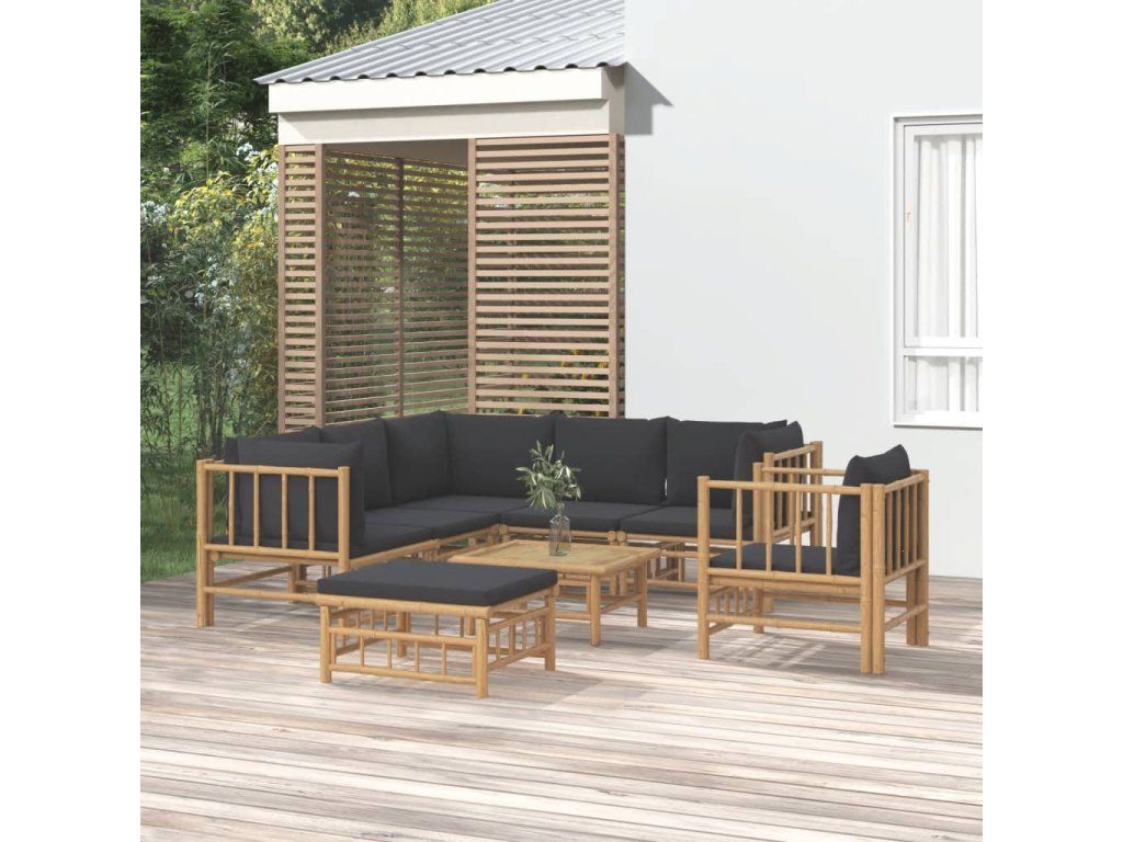 Vychutnejte si šálek kávy nebo čaje za příjemného počasí ve svém venkovním bydlení s touto elegantní bambusovou zahradní sedací soupravou!