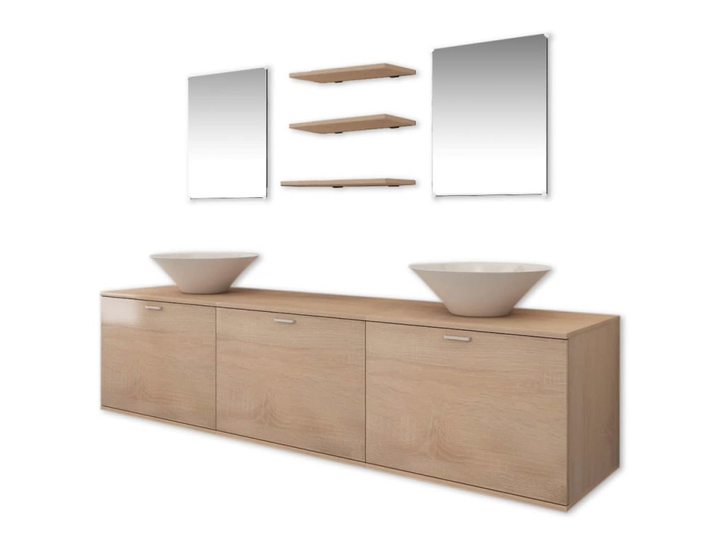 Tento kompletní set obsahuje 1 nástěnnou skříňku pod umyvadlo, 2 zrcadla, 3 police a 2 umyvadla a ve vaší koupelně se bude skvěle vyjímat. Design tohoto setu optimálně využije prostor, aniž byste museli slevovat ze svých představ o stylu zařízení vaší koupelny.