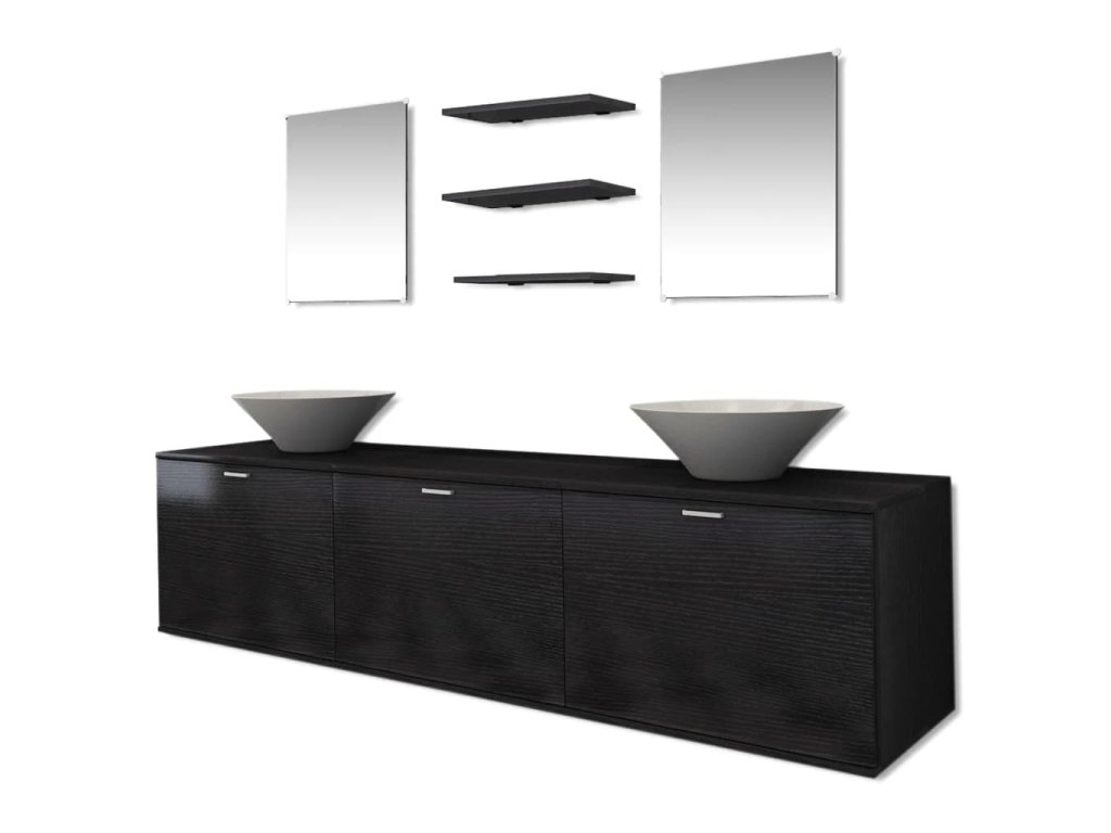 Tento kompletní set obsahuje 1 nástěnnou skříňku pod umyvadlo, 2 zrcadla, 3 police a 2 umyvadla a ve vaší koupelně se bude skvěle vyjímat. Design tohoto setu optimálně využije prostor, aniž byste museli slevovat ze svých představ o stylu zařízení vaší koupelny.
