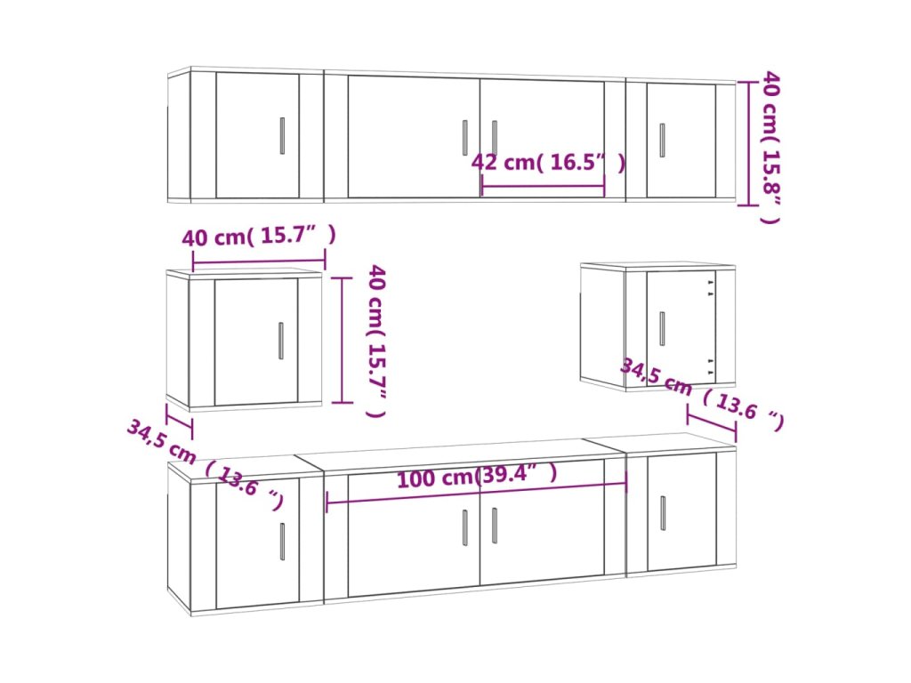 - 6x TV skříňka: 40 x 34,5 x 40 cm (D x Š x V)