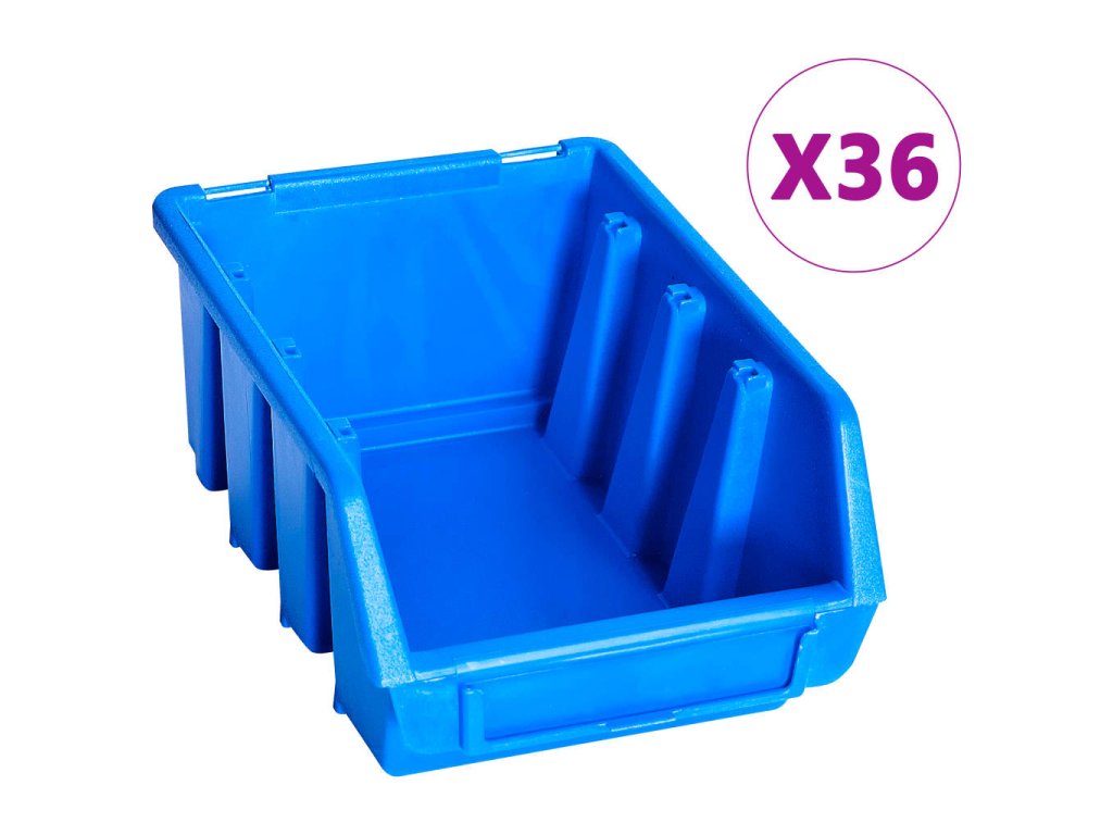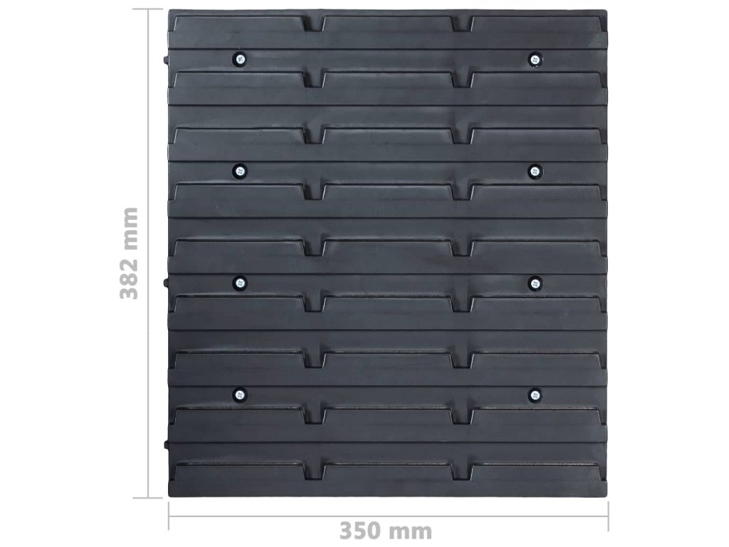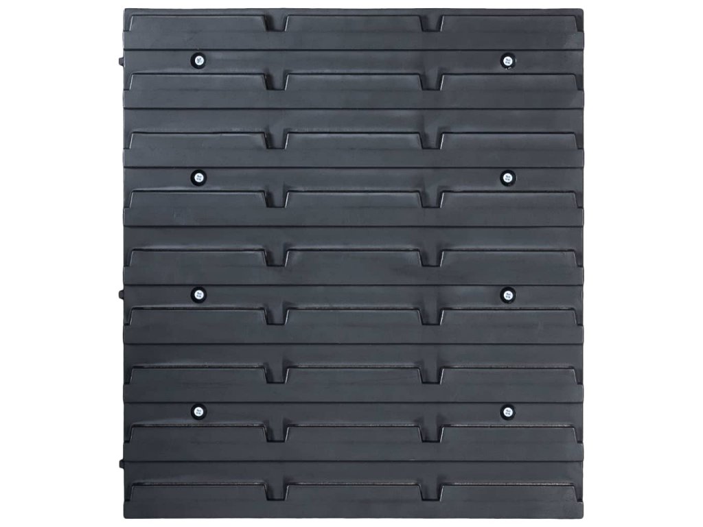 Tento funkční držák se stohovatelnými boxy nabízí celou řadu možností pro uložení malých součástek, jako jsou šrouby, hřebíky, matice, objímky, spoje apod. Do šesti pevných nástěnných panelů je zasazených 90 zásobníků, které si lze označit, abyste měli lepší přehled o jejich obsahu. Jednotlivé boxy můžete také samostatně vytahovat a naskládat je na sebe. Úložnou sadu je možné libovolně rozšiřovat a dá se snadno namontovat na stěnu garáže nebo kůlny. Soupravu skladovacích zásobníků si můžete přizpůsobit dle vlastních potřeb.