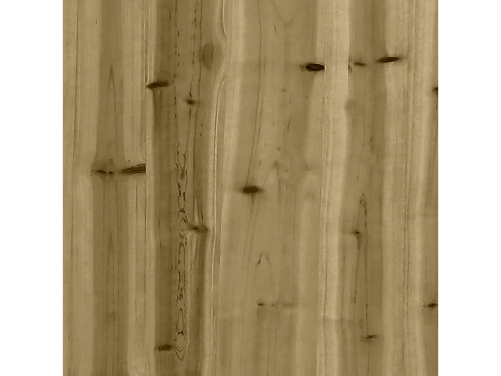 - Pevný a odolný materiál: Masivní borové dřevo je známé svou pevností a odolností. Jeho rovná textura a výrazné suky přispívají k jeho rustikálnímu kouzlu. Dřevo bylo napuštěno konzervačním roztokem a ošetřeno v autoklávu, čímž se zvýšila jeho odolnost proti hnilobě a povětrnostním vlivům.