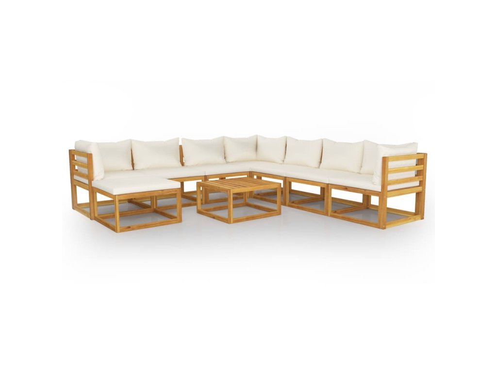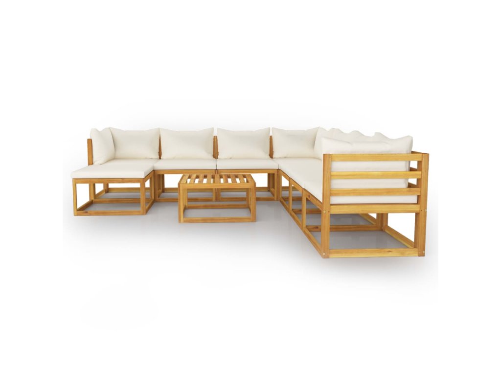 Rám z masivního akáciového dřeva je pevný, odolný a má dlouhou životnost. Dřevo je napuštěné olejem, sedací souprava je proto vhodná i pro venkovní použití. Odnímatelné podušky na sedáky a opěradla jsou silně polstrované, takže se vám na nich bude nesmírně dobře sedět. Součástí balení je také konferenční stolek v unikátním laťkovém provedení. Nevšední modulární design vám umožní všechny díly přestavovat a upravovat dle momentálních potřeb.