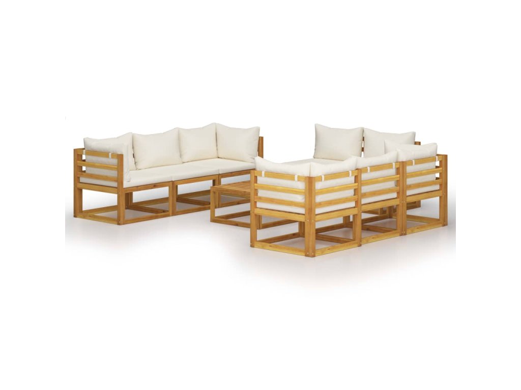 Rám z masivního akáciového dřeva je pevný, odolný a má dlouhou životnost. Dřevo je napuštěné olejem, sedací souprava je proto vhodná i pro venkovní použití. Odnímatelné podušky na sedáky a opěradla jsou silně polstrované, takže se vám na nich bude nesmírně dobře sedět. Součástí balení je také konferenční stolek v unikátním laťkovém provedení. Nevšední modulární design vám umožní všechny díly přestavovat a upravovat dle momentálních potřeb.