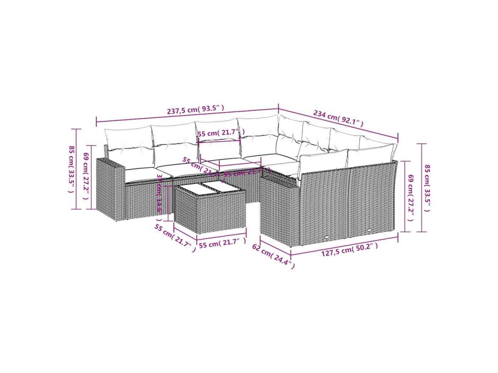 Tato zahradní sedací souprava je dokonalým doplňkem vaší zahrady, terasy nebo dvorku a poskytne vám pohodlné a příjemné místo, kde si můžete povídat s rodinou a přáteli nebo jen tak odpočívat a užívat si pobyt venku.