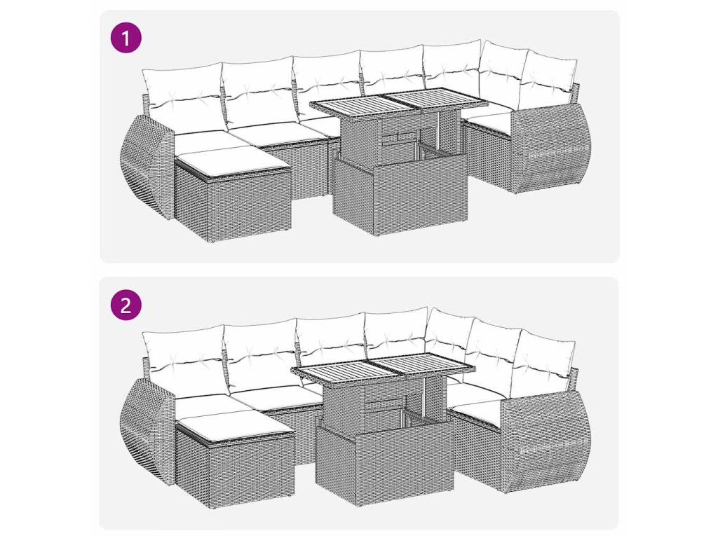 - Modulární design: Tato sada venkovního nábytku se vyznačuje modulární konstrukcí, je tedy zcela flexibilní a lze ji snadno přemisťovat, takže si můžete uspořádat venkovní nábytek dle vašich potřeb.