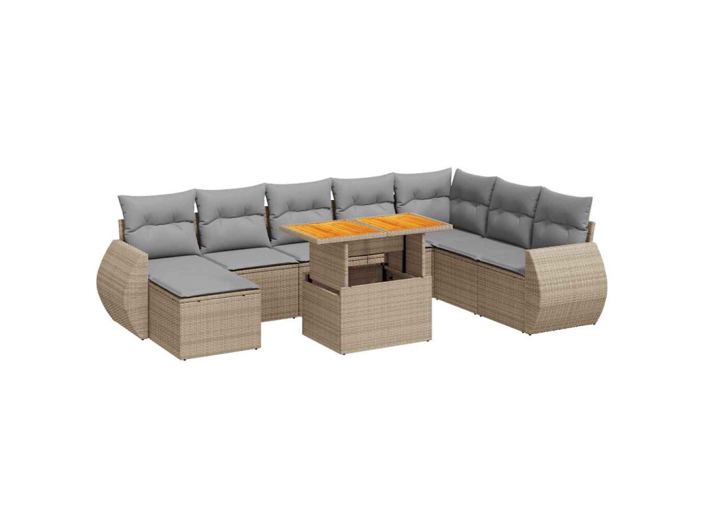 - Materiál: PE ratan, práškově lakovaná ocel, masivní akáciové dřevo s olejovou povrchovou úpravou