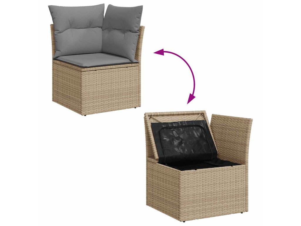 - Úložný prostor s voděodolným vakem: Každý zahradní sedací díl má úložný prostor pod sedákem, který je opatřen voděodolnou vložkou a poslouží vám k ukládání podušek, hraček a dalších věcí. Vnitřní vak má horní kryt a lze jej bezpečně připevnit k sedáku pomocí suchého zipu, což zaručí větší stabilitu.