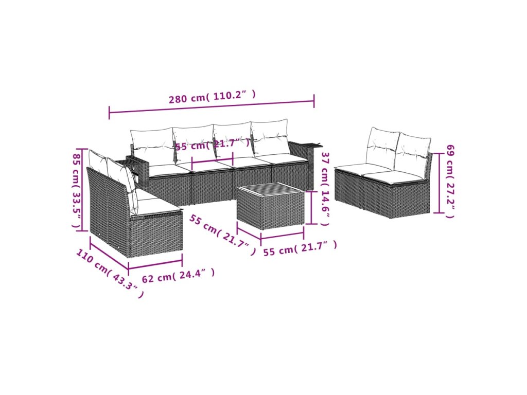 Tato zahradní sedací souprava je dokonalým doplňkem vaší zahrady, terasy nebo dvorku a poskytne vám pohodlné a příjemné místo, kde si můžete povídat s rodinou a přáteli nebo jen tak odpočívat a užívat si pobyt venku.