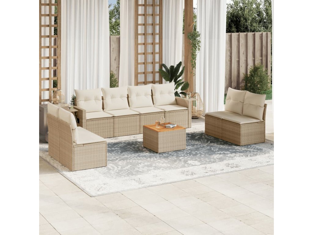 - Materiál: PE ratan, práškově lakovaná ocel, masivní akáciové dřevo s olejovou povrchovou úpravou