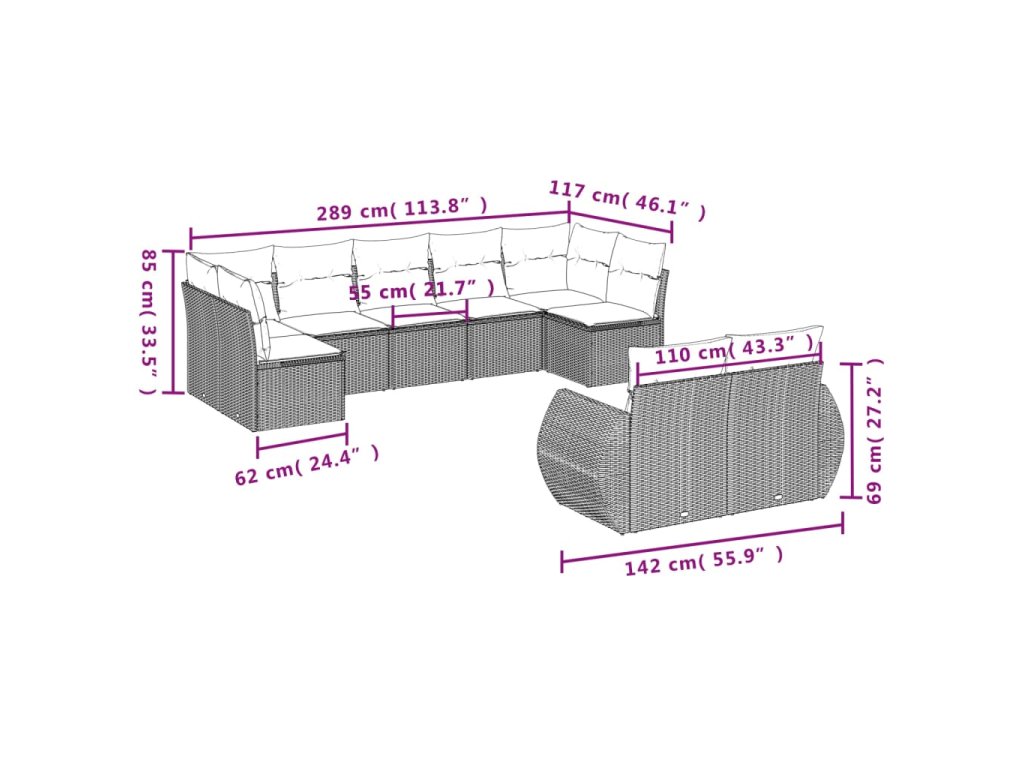 Tato zahradní sedací souprava je dokonalým doplňkem vaší zahrady, terasy nebo dvorku a poskytne vám pohodlné a příjemné místo, kde si můžete povídat s rodinou a přáteli nebo jen tak odpočívat a užívat si pobyt venku.