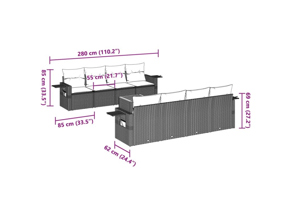 Tato zahradní sedací souprava je dokonalým doplňkem vaší zahrady, terasy nebo dvorku a poskytne vám pohodlné a příjemné místo, kde si můžete povídat s rodinou a přáteli nebo jen tak odpočívat a užívat si pobyt venku.
