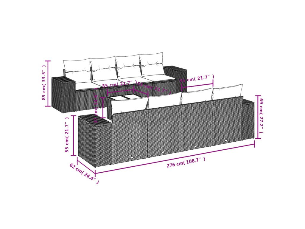 Tato zahradní sedací souprava je dokonalým doplňkem vaší zahrady, terasy nebo dvorku a poskytne vám pohodlné a příjemné místo, kde si můžete povídat s rodinou a přáteli nebo jen tak odpočívat a užívat si pobyt venku.