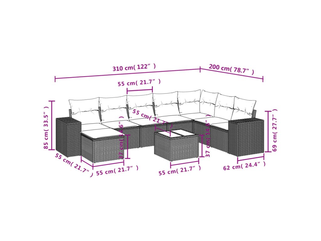 Tato zahradní sedací souprava je dokonalým doplňkem vaší zahrady, terasy nebo dvorku a poskytne vám pohodlné a příjemné místo, kde si můžete povídat s rodinou a přáteli nebo jen tak odpočívat a užívat si pobyt venku.