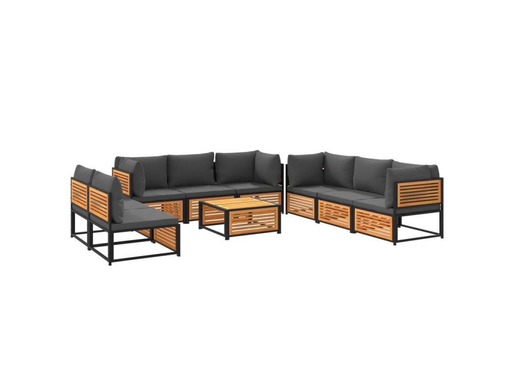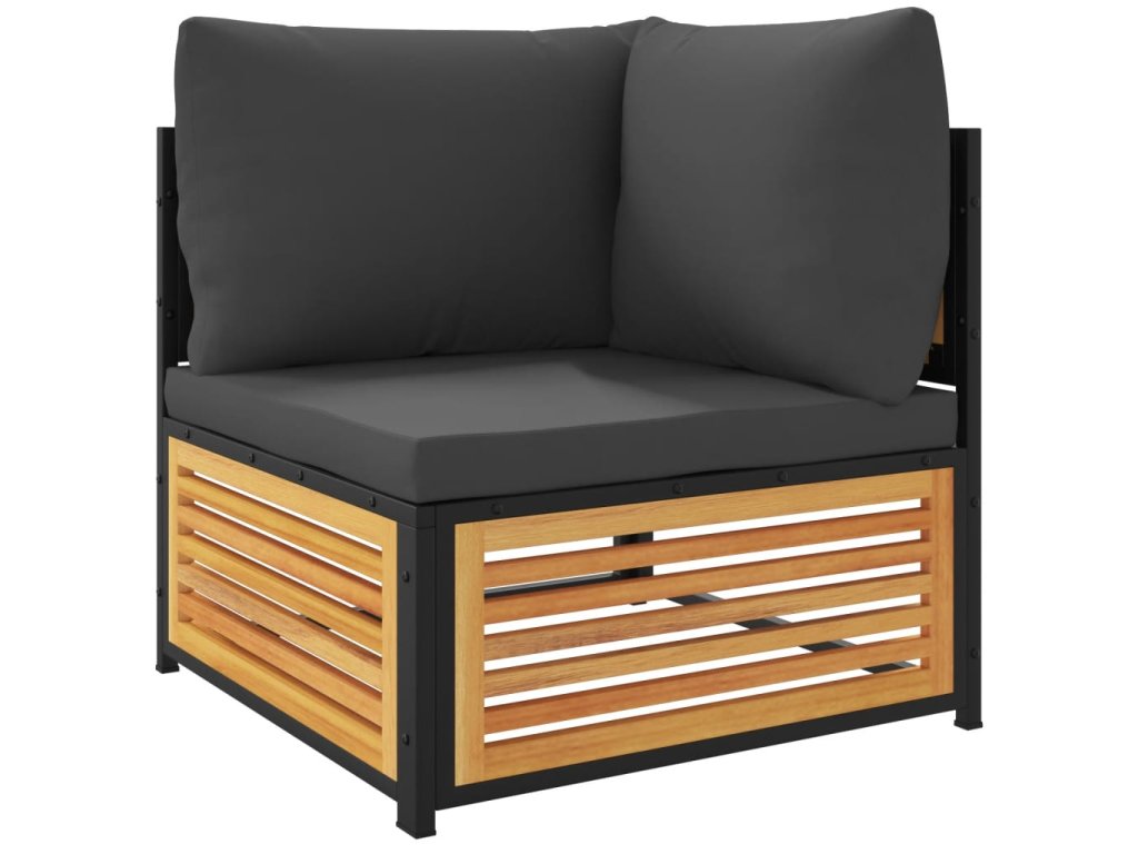 - Robustní a stabilní rám: Masivní akáciové dřevo je známé svou pevností a odolností. Jeho rozmanité odstíny a jedinečná struktura vláken mu dodávají atraktivní vzhled. Vyznačuje se dobrou stabilitou a odolností vůči povětrnostním vlivům, takže je ideální pro výrobu interiérového i venkovního nábytku. Ocelový rám s práškovým nástřikem zajišťuje, že zahradní nábytek je pevný a stabilní pro každodenní venkovní použití.