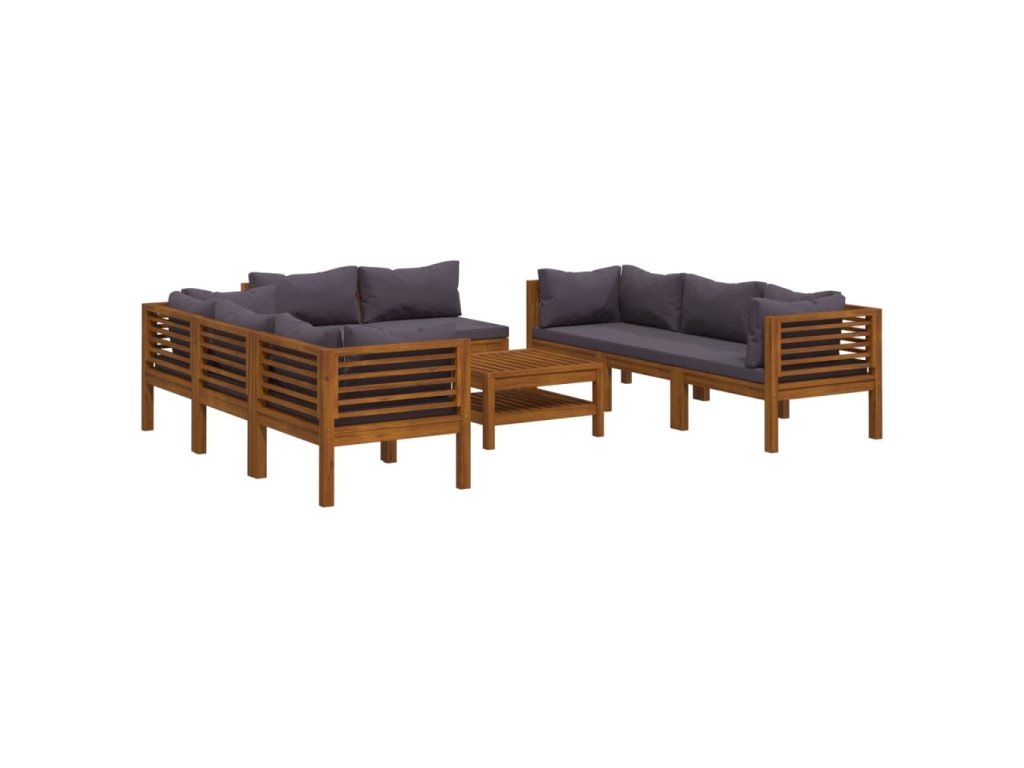 Rám z masivního akáciového dřeva je pevný, odolný a má dlouhou životnost. Dřevo je napuštěné olejem, sedací souprava je proto vhodná i pro venkovní použití. Odnímatelné podušky jsou silně polstrované, takže se vám na nich bude nesmírně dobře sedět. Součástí balení je také konferenční stolek v unikátním laťkovém provedení. Nevšední modulární design vám umožní všechny díly přestavovat a upravovat dle momentálních potřeb.
