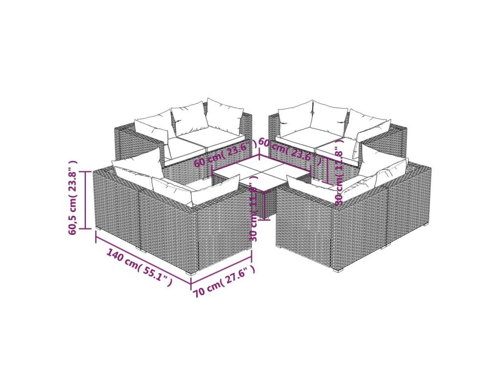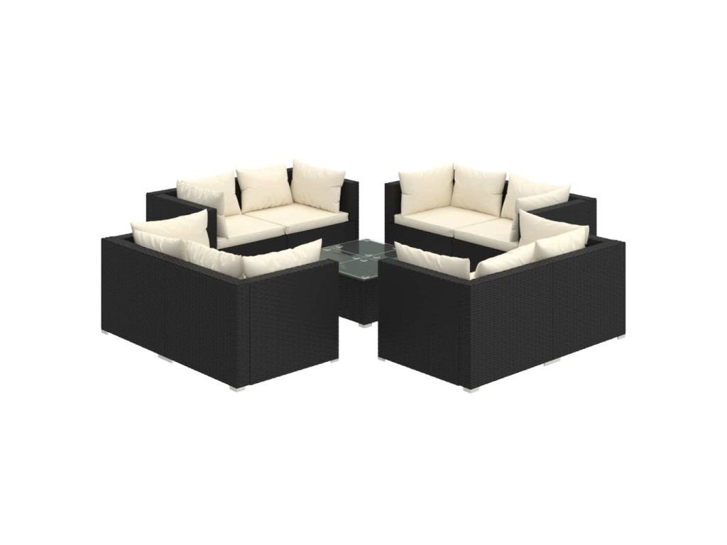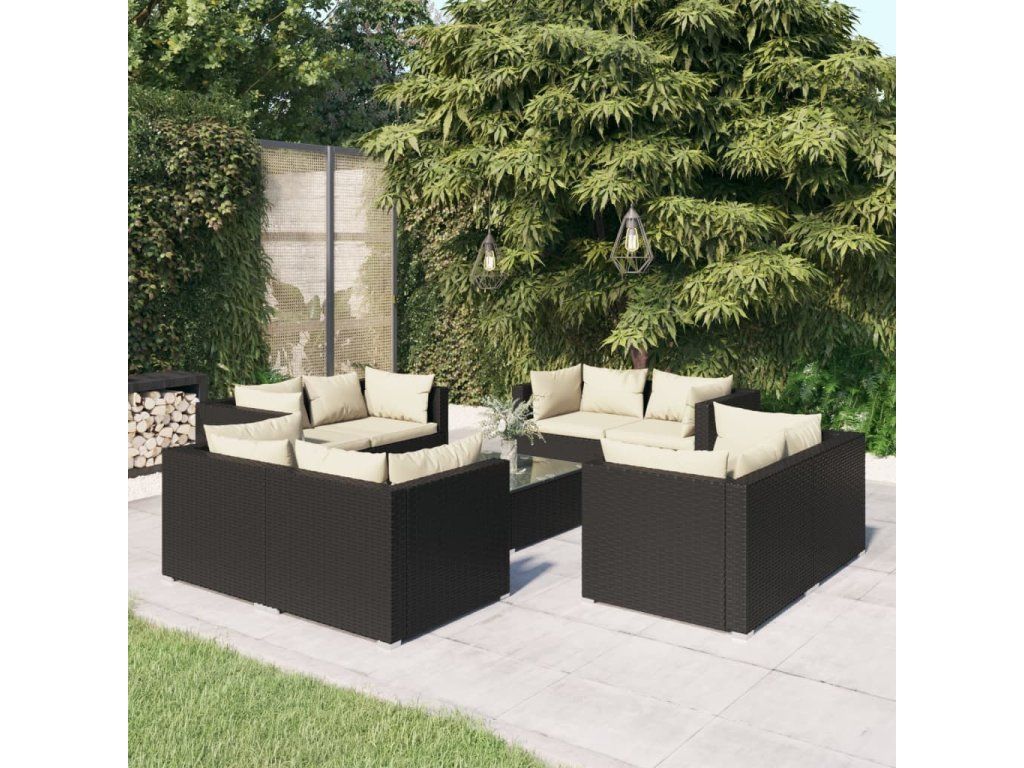 Užijte si s rodinou a přáteli relax na čerstvém vzduchu na této polyratanové zahradní sedací soupravě s poduškami!