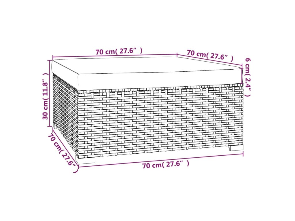 - Rozměry podnožky: 70 x 70 x 30 cm (D x Š x V)