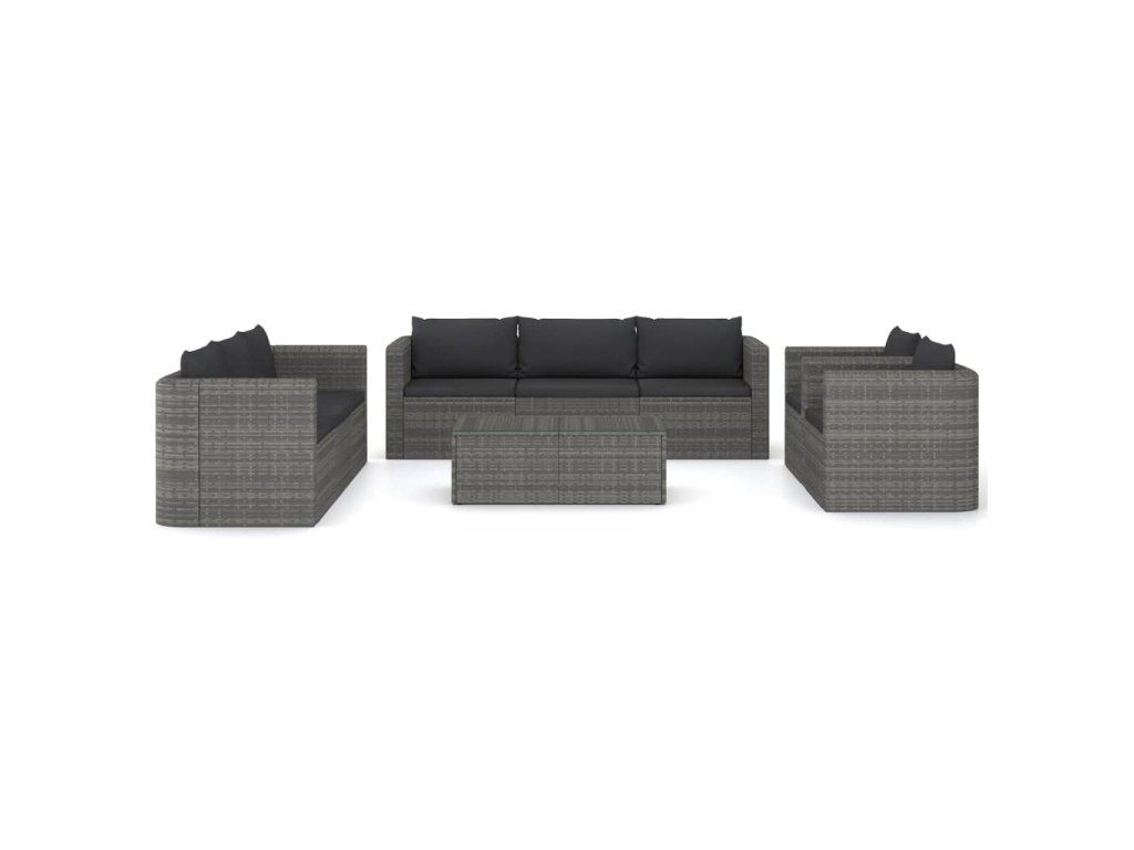 Zahradní sedací souprava je vyrobená z voděodolného polyratanu, který se snadno udržuje čistý. Je pevná a odolná a vhodná pro každodenní venkovní použití. Sada obsahuje mimořádně pohodlné, silně polstrované podušky na sedáky a polštáře za záda, jež vám umožní užívat si stejného pohodlí jako ve vašem obývacím pokoji. Polyesterové potahy jsou nenáročné na údržbu a dají se jednoduše sejmout a vyprat. Polyratanová souprava je velmi flexibilní, můžete ji tedy snadno přestavět tak, aby krásně zapadla do každého prostředí.