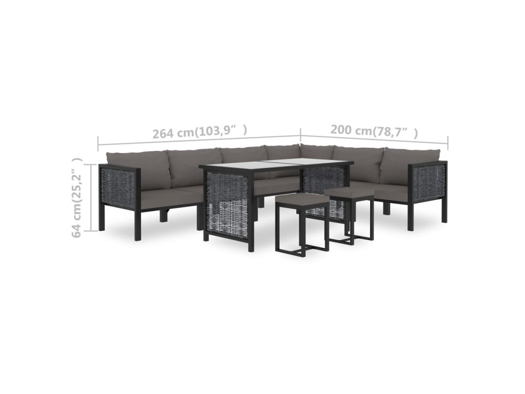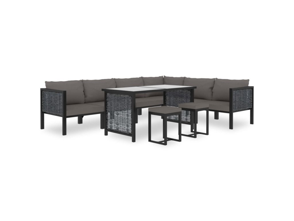 Zahradní sedací souprava je vyrobená z klimaticky odolného polyratanu. Snadno se čistí, hodně toho vydrží a můžete ji klidně používat každý den. Jídelní stůl je zhotovený z tvrzeného skla, což mu zaručuje mimořádnou pevnost. Rám z práškově lakovaného hliníku dodává celé soupravě na robustnosti. Konstrukce se však zároveň vyznačuje nízkou hmotností, takže lze jednotlivé kusy nábytku bez námahy přesouvat z místa na místo. Můžete je tudíž kombinovat podle vašeho přání. Polstrované podušky na sedák a polštáře za záda se navíc postarají o maximální pohodlí.