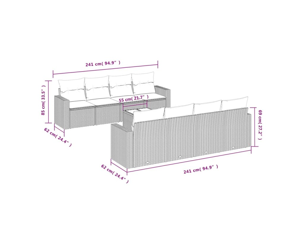 Tato zahradní sedací souprava je dokonalým doplňkem vaší zahrady, terasy nebo dvorku a poskytne vám pohodlné a příjemné místo, kde si můžete povídat s rodinou a přáteli nebo jen tak odpočívat a užívat si pobyt venku.