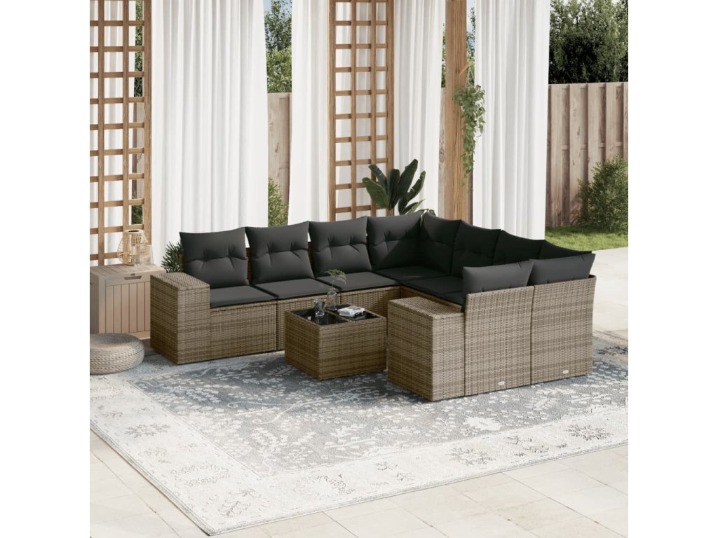 - Pohodlné sezení: Tento venkovní nábytek se silně polstrovanými poduškami a polštáři nabízí pohodlné sezení.