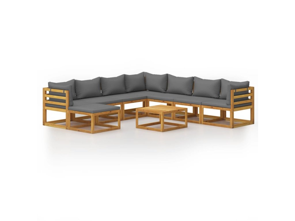 Rám z masivního akáciového dřeva je pevný, odolný a má dlouhou životnost. Dřevo je napuštěné olejem, sedací souprava je proto vhodná i pro venkovní použití. Odnímatelné podušky na sedáky a opěradla jsou silně polstrované, takže se vám na nich bude nesmírně dobře sedět. Součástí balení je také konferenční stolek v unikátním laťkovém provedení. Nevšední modulární design vám umožní všechny díly přestavovat a upravovat dle momentálních potřeb.