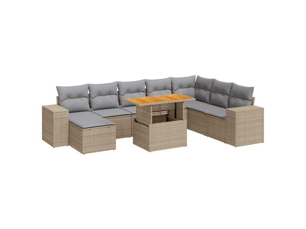 - Materiál: PE ratan, práškově lakovaná ocel, masivní akáciové dřevo s olejovou povrchovou úpravou