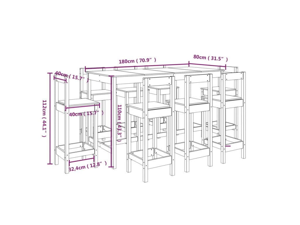 - Rozměry barového stolu: 180 x 80 x 110 cm (Š x H x V)