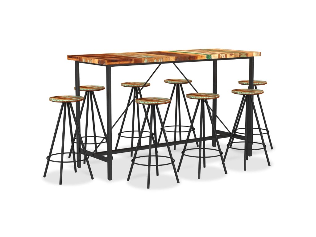 Barový stůl a stoličky jsou vyrobené z masivního recyklovaného dřeva, a tak mají vlastnosti různých dřevin, jako je teak, mangovníkové dřevo, akácie a další. Recyklované dřevo je pevné, stabilní, odolné a zároveň krásně vypadá. Známky opotřebení dodávají každému kusu nábytku na jedinečnosti a ocelové nohy umocňují jejich působivý industriální styl. Každá fáze výrobního procesu je prováděná s největší pečlivostí, ať už jde o sestavení, leštění, natírání anebo lakování.