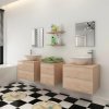 Tento kompletní set se skládá z 1 nástěnné skříňky pod umyvadlo, 2 zrcadel, 2 polic, 2 umyvadel a 2 vodovodních baterií a bude skvělým doplňkem do vaší koupelny. Optimalizuje její prostor, aniž byste museli slevit ze svého stylu.