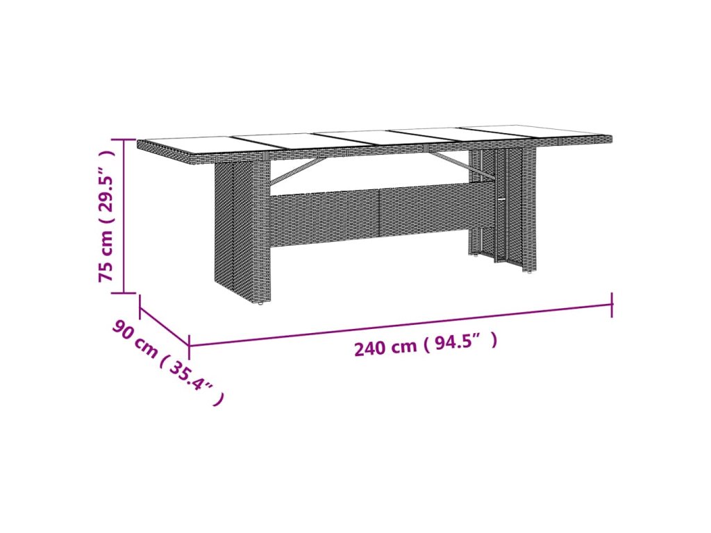 - Skleněná deska stolu: Deska venkovního stolu je zhotovena ze silného a odolného tvrzeného skla, takže ji snadno očistíte vlhkým hadříkem a zároveň do vašeho venkovního prostoru vnese nádech elegance.