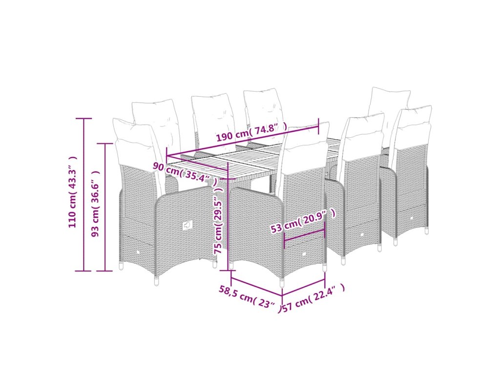 - Materiál: PE ratan, ocel, masivní akáciové dřevo s olejovou povrchovou úpravou