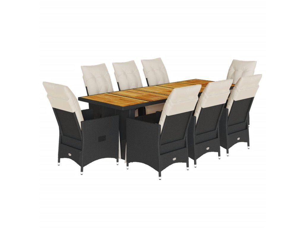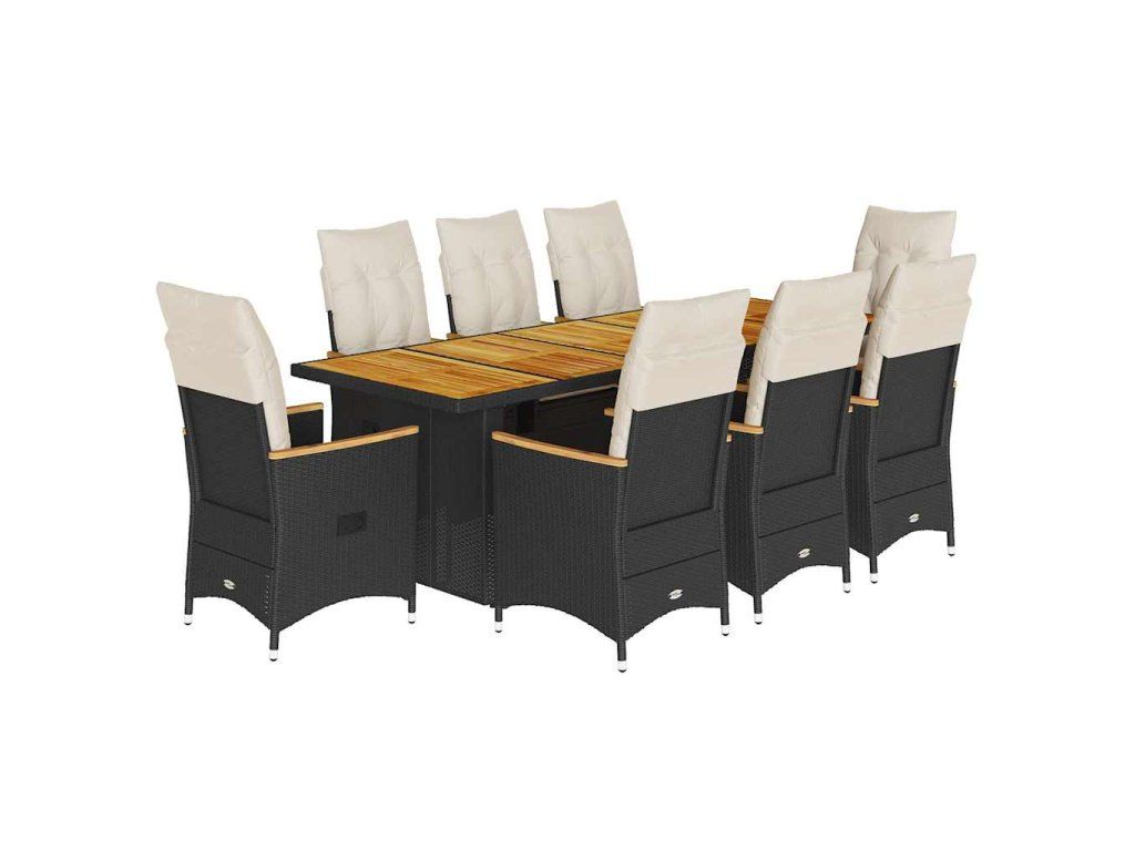 - Materiál: PE ratan, práškově lakovaná ocel, masivní akáciové dřevo s olejovou povrchovou úpravou