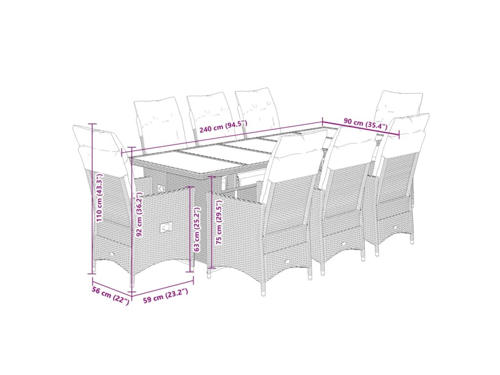 - Pohodlné sezení: Tento venkovní nábytek se silně polstrovanými poduškami a polštáři nabízí pohodlné sezení.
