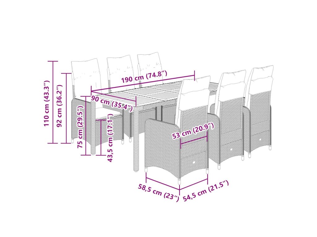 - Materiál: PE ratan, ocel, masivní akáciové dřevo s olejovou povrchovou úpravou