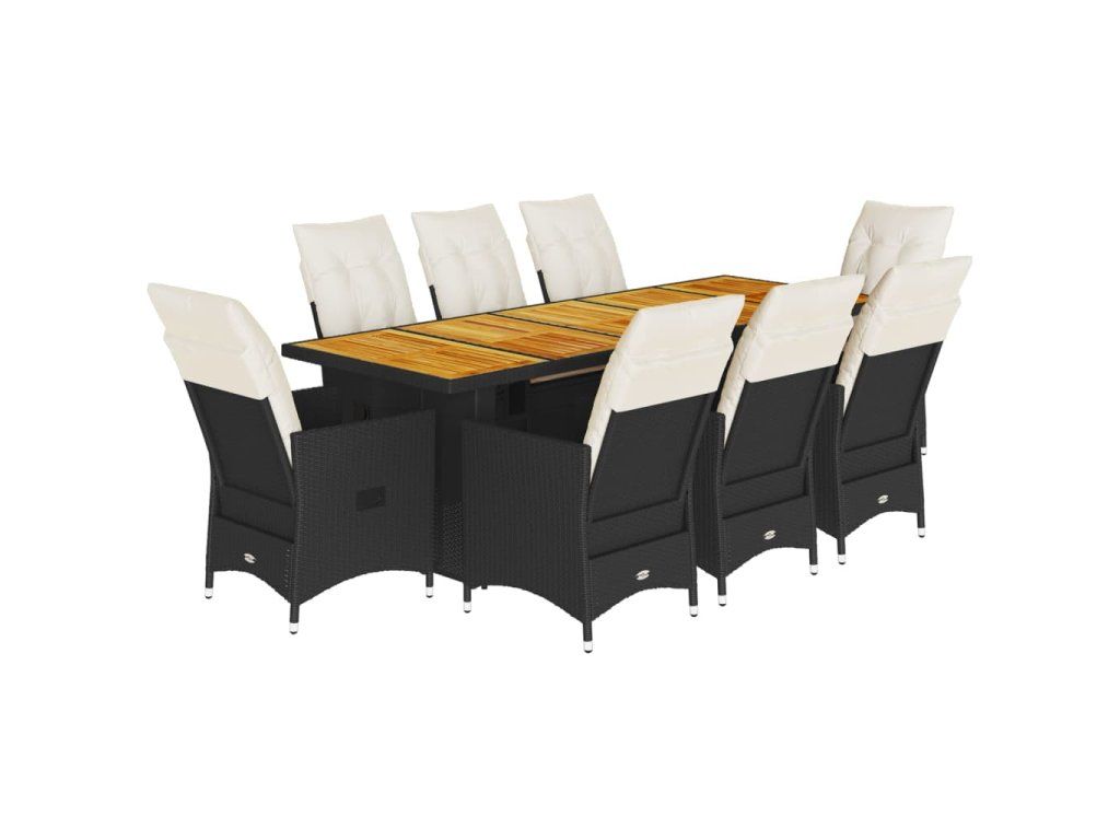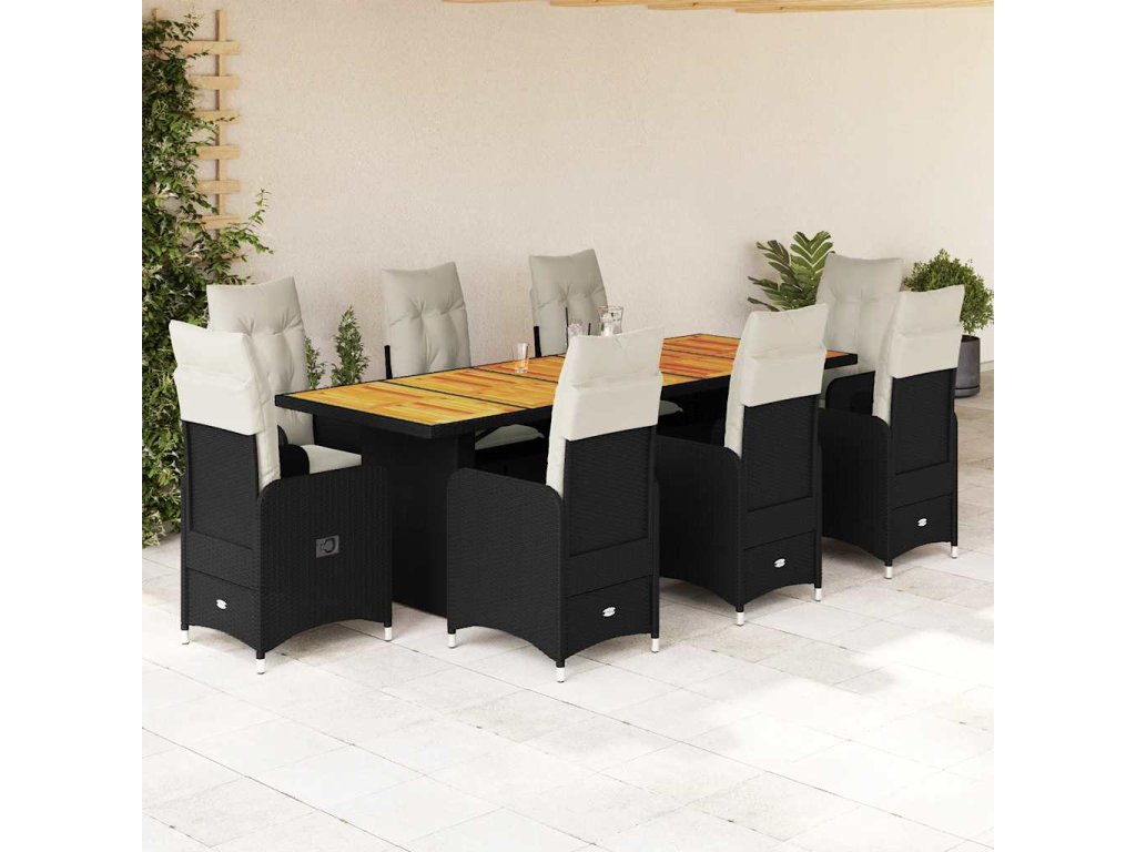 - Materiál: PE ratan, práškově lakovaná ocel, masivní akáciové dřevo s olejovou povrchovou úpravou