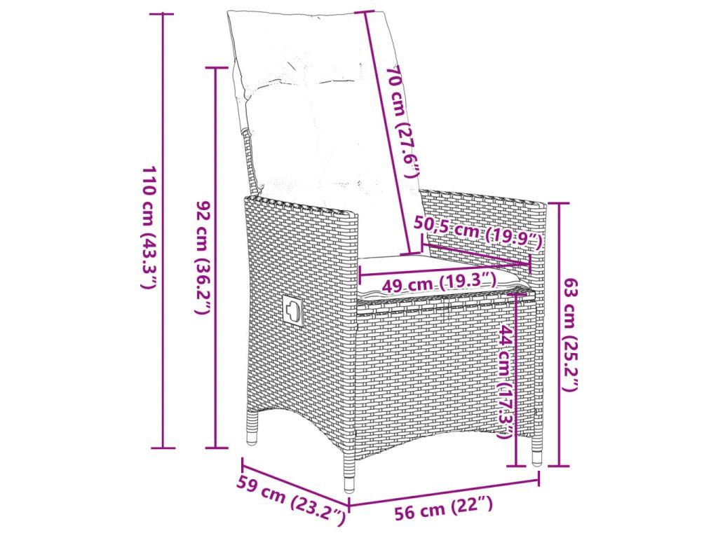 - Rozměry při poloze vsedě: 56 x 59 x 92 cm (Š x H x V)