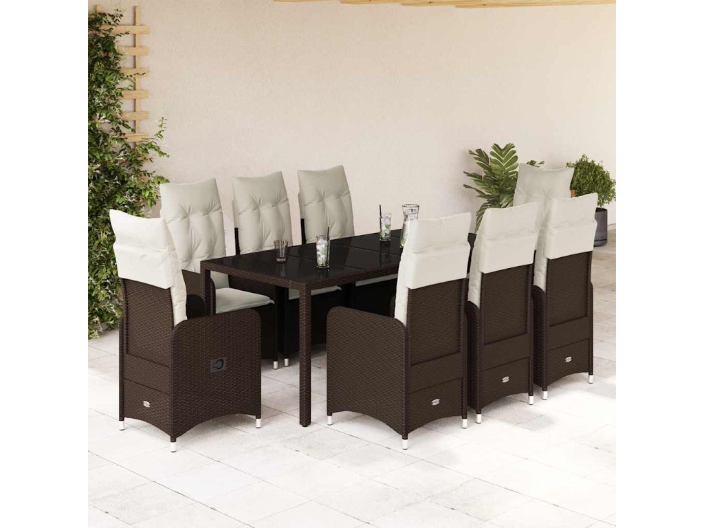 - Materiál: PE ratan, práškově lakovaná ocel, tvrzené sklo