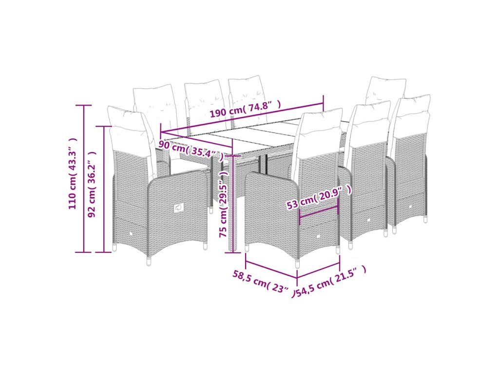 - Pohodlné sezení: Tento venkovní nábytek se silně polstrovanými poduškami a polštáři nabízí pohodlné sezení.