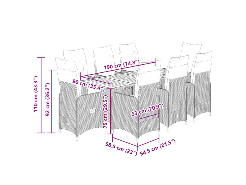 - Materiál: PE ratan, ocel, masivní akáciové dřevo s olejovou povrchovou úpravou