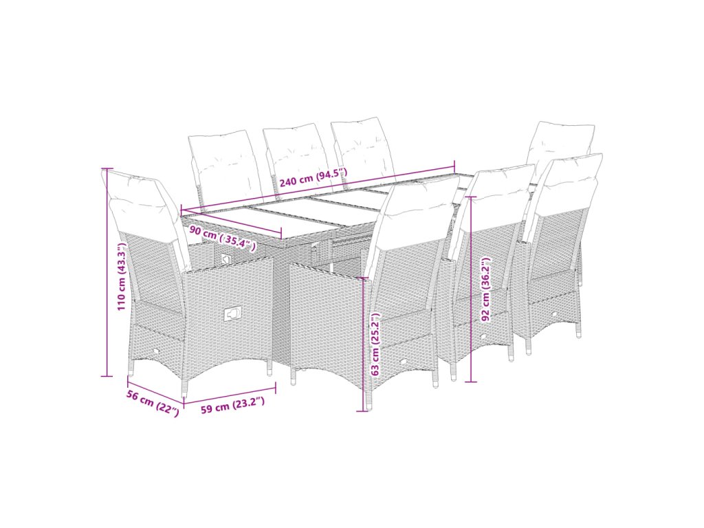 - Pohodlné sezení: Tento venkovní nábytek se silně polstrovanými poduškami a polštáři nabízí pohodlné sezení.