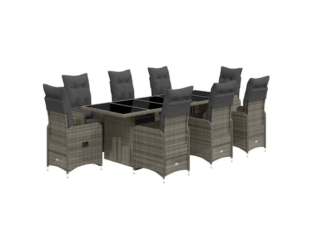 - Materiál: PE ratan, práškově lakovaná ocel, tvrzené sklo
